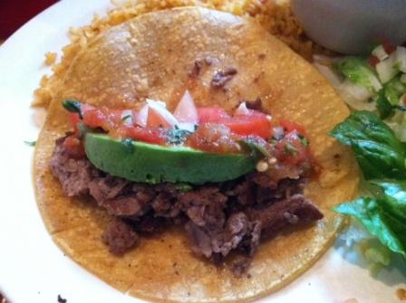These tacos are served with your choice of flour or corn tortillas (my fav is always corn), slices of fresh avocado, pico de gallo, rice (what I like to refer to as “Grandma’s Rice” – so perfectly fluffy) and borracho beans (drunken beans made with beer). The star of this dish is ribeye meat that is thinly sliced and has been marinated in a secret concoction of spices then grilled to perfection.